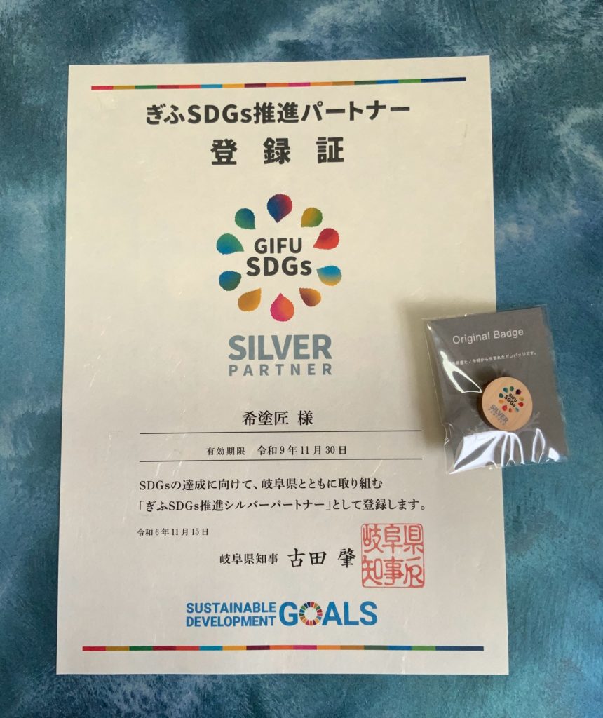 岐阜県知事より「ぎふSDGs推進シルバーパートナー」として正式に認定をいただきました!